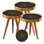 Set 3 Masute Cafea Marimi Diferite cu Blat Auriu cu Negru si Picioare din Lemn – Design Elegant si Luxos