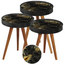 Set 3 Măsuțe Cafea – Mărimi Diferite, Design Tropical, Blat Negru cu Auriu, Picioare Lemn Natural, Stil Elegant și Modern