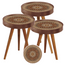 Set 3 Masute Cafea Marimi Diferite Maro cu Motive Florale si Geometrice, Accent Grecesc si Picioare din Lemn