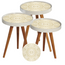 Adauga un plus de stil si functionalitate casei tale cu acest set de 3 masute decorative rotunde. Cu blat alb decorat cu model mandala auriu si picioare din lemn natural, aceste masute sunt perfecte pentru living, dormitor sau balcon. Designul elegant si modern le transforma intr-un adevarat punct focal, in timp ce functionalitatea lor versatila iti permite sa le folosesti ca masute de cafea, suport pentru plante, noptiera sau element decorativ.