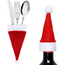 Set mini caciulite Mos Craciun pentru sticle sau tacamuri, 10 bucati, stofa, 13 x 6.5 cm, rosu / alb